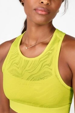 Designed to never let you down, our vibrant sports bra features a high neck for added support and a movement-friendly racerback design to help you through your most intense workouts.