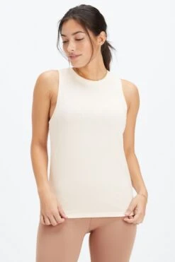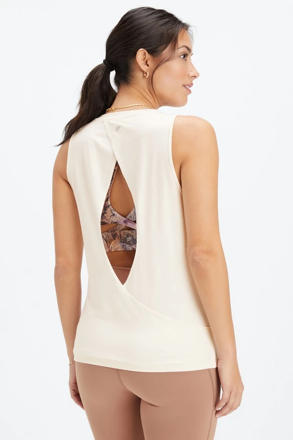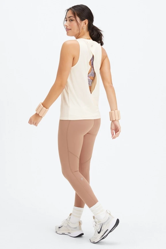 This super-soft tank with open back detail is made from recycled fabrics and will wick away moisture without feeling clingy in your next workout.