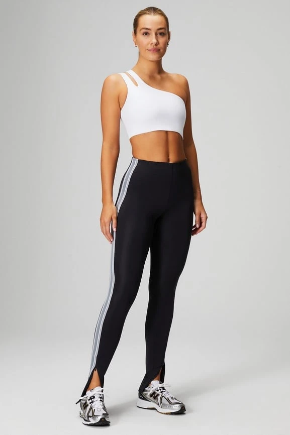 Make a style statement. This midi bra features double straps and an asymmetrical neckline. It’s designed for performance but chic enough to wear out and about.
