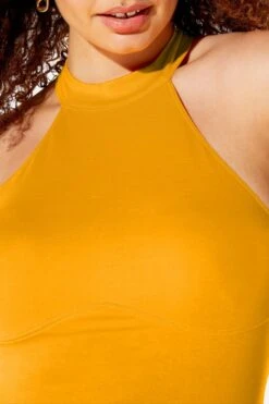 Chill enough for the couch but chic enough to go out. Made from our light and stretchy Body Butter fabric, this halter has an elongating mock-neck and racer back. Underbust seams are detailed with style lines to accentuate your natural curves.