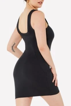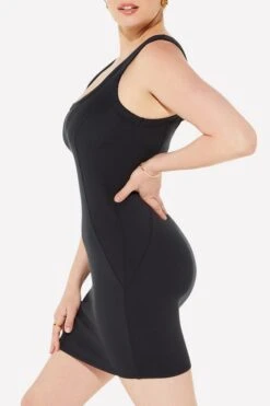 The Tank Dress is cut from our light and stretchy Body Butter fabric, made to wear every day and feel great against the skin. It has a figure-hugging silhouette that moves freely without wrinkling.