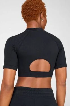 Not too long and not too short, our three-quarter sleeve top is cut from our second-skin fabric and designed with an open back for extra ventilation.
