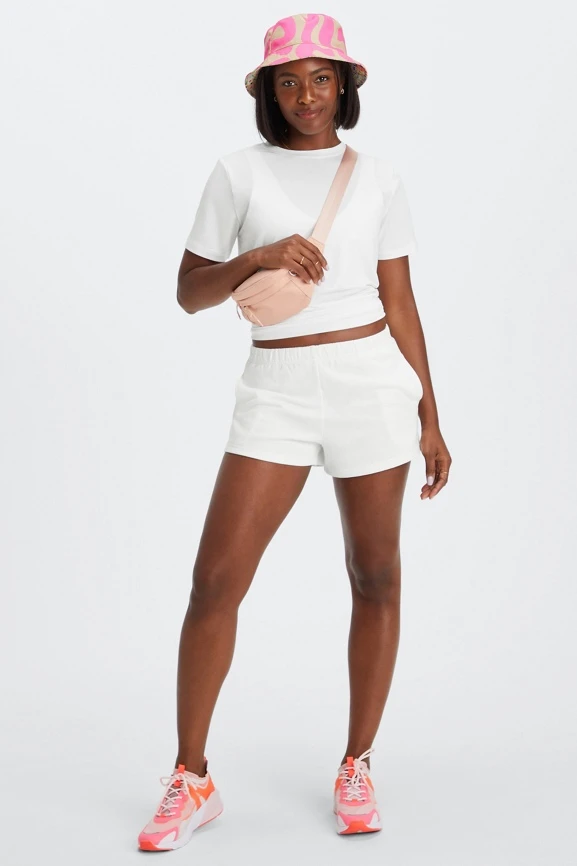 Lounge in luxury. This French Terry short features pockets and an elastic waistband for extra comfort.