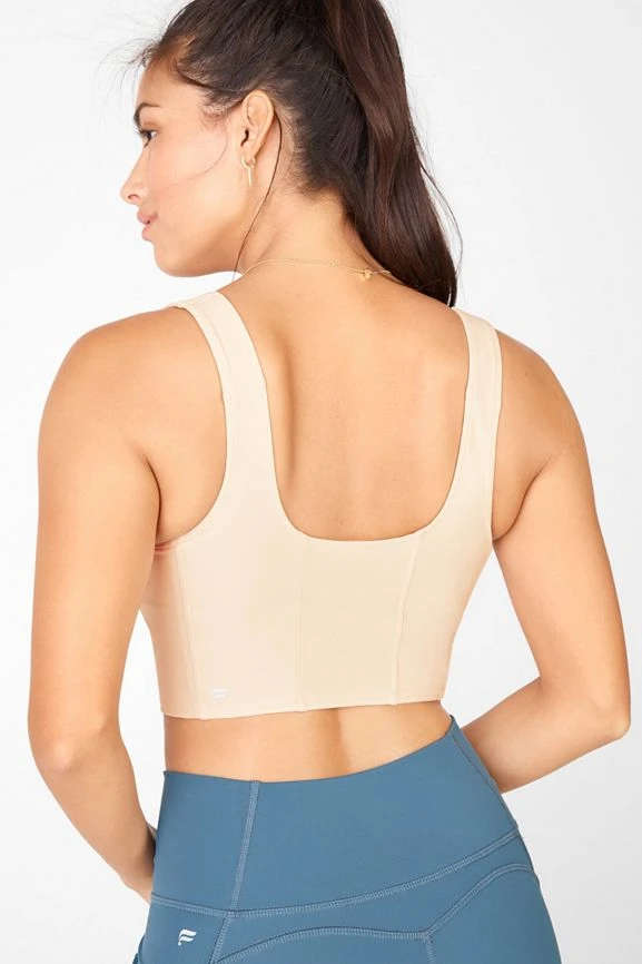 We put a corset-inspired spin on your everyday sports bra. It’s made with wide, supportive straps for all-day comfort and comes in a midi length for extra coverage.