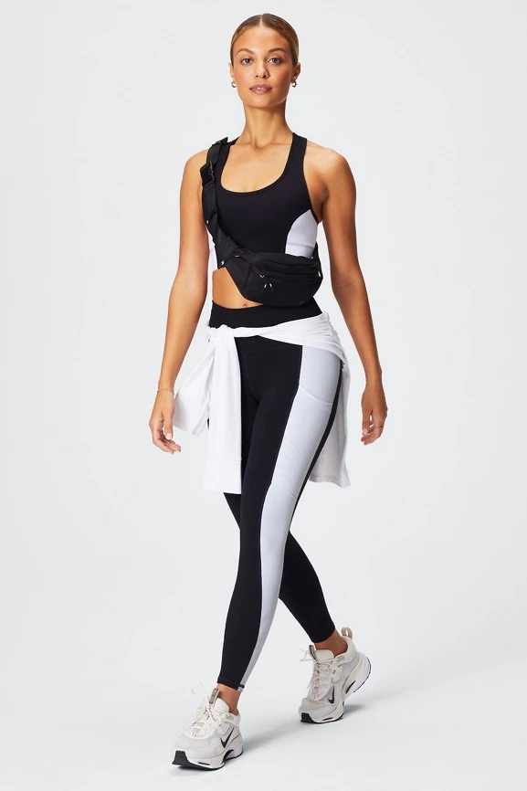 Our fan-favourite sports bra has the racerback design and easy-access pocket you love – now in our new, sleek, smooth nylon material! This highly resilient fabric’s built with UPF 50+ to help protect you outdoors.