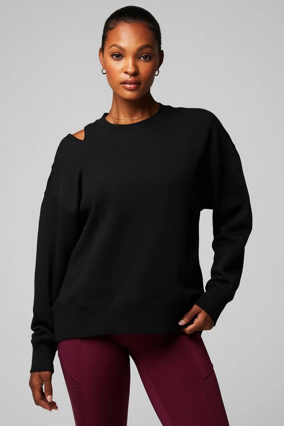 Dressed to chill. This seriously soft sweatshirt is designed with a slightly longer length and a chic shoulder cutout. It’s crafted in our warm Cozy Fleece fabric, made with recycled materials.