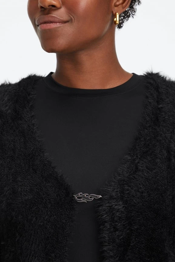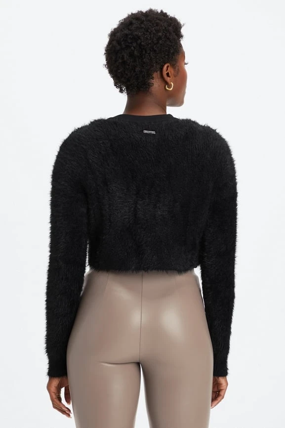 Made from soft, textured faux mohair fabric, this cropped cardigan with front closure is a nod to ’90’s style icons.