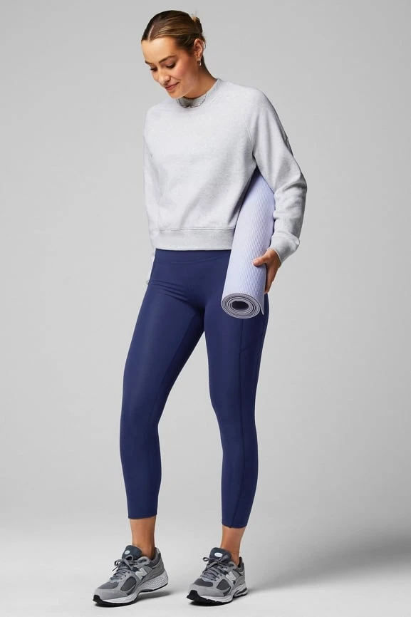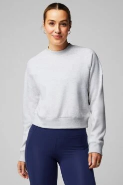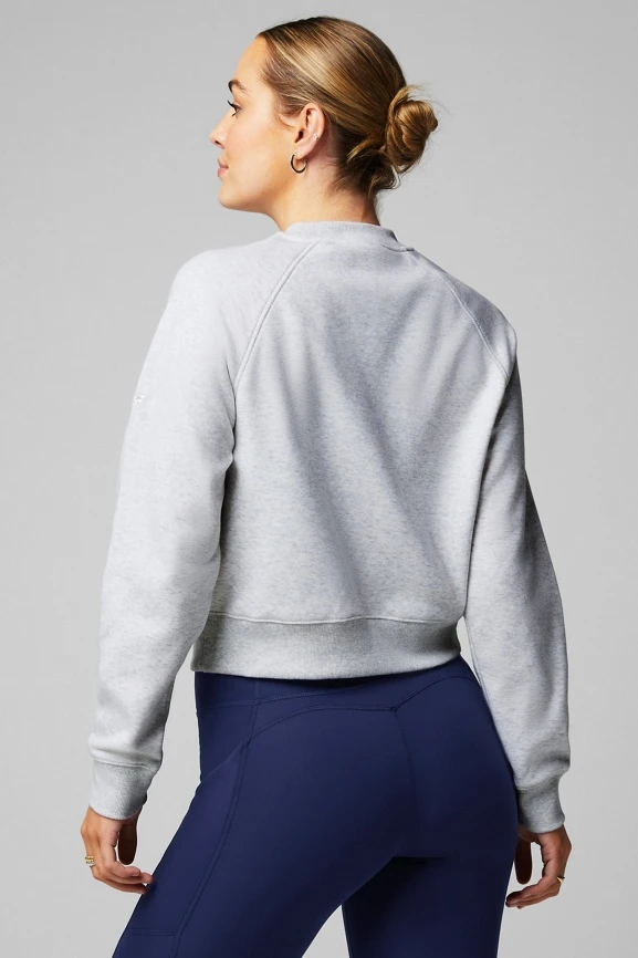 Dressed to chill. This seriously soft sweatshirt is shrunken and fitted with a slight mock neck. It’s crafted in our warm Cozy Fleece fabric, made with recycled materials.
