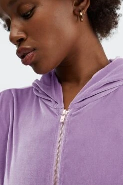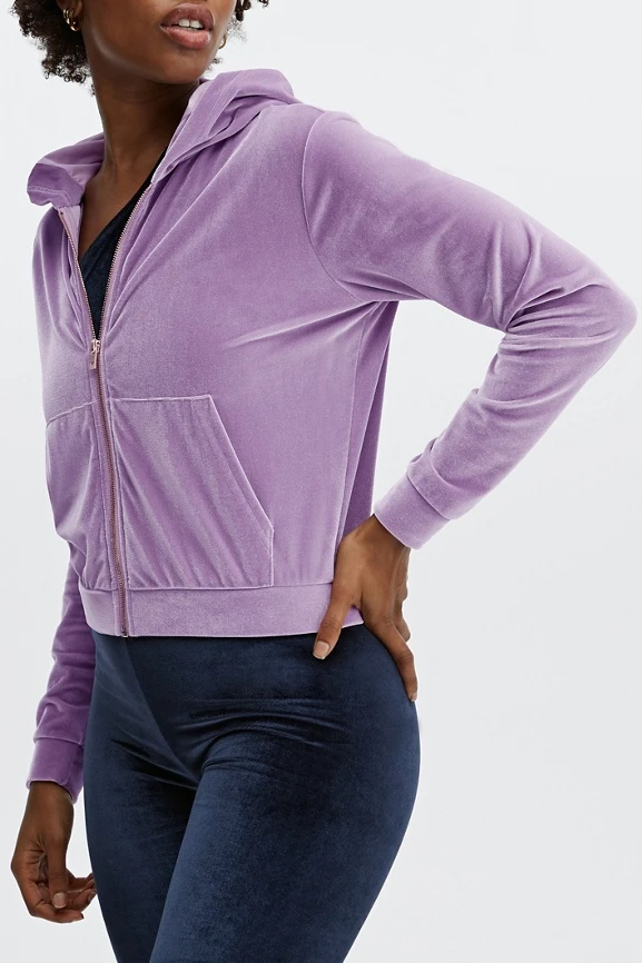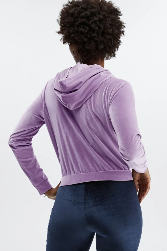 Plush velour fabric elevates this relaxed-fit hoodie with a front kangaroo pocket and an elastic-encased hem band.