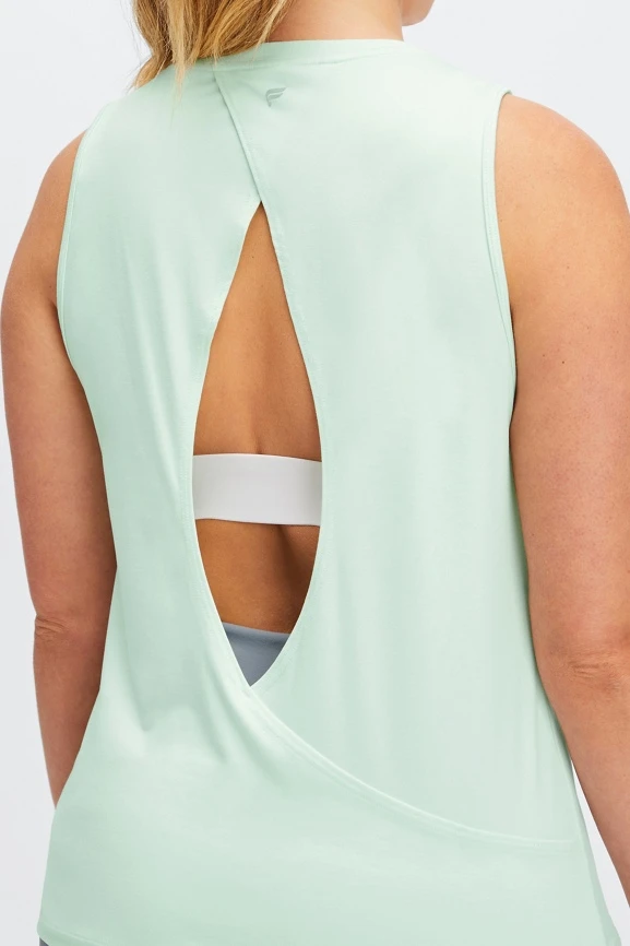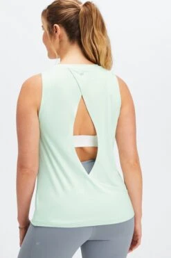 This super-soft tank with open back detail is made from recycled fabrics and will wick away moisture without feeling clingy in your next workout.