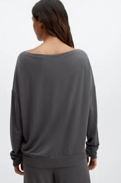 If you’re looking for the perfect layer for pre-and-post workouts, look no further. This pretty pullover will do the trick with its soft terry fabric, relaxed silhouette and stylish boatneck design.
