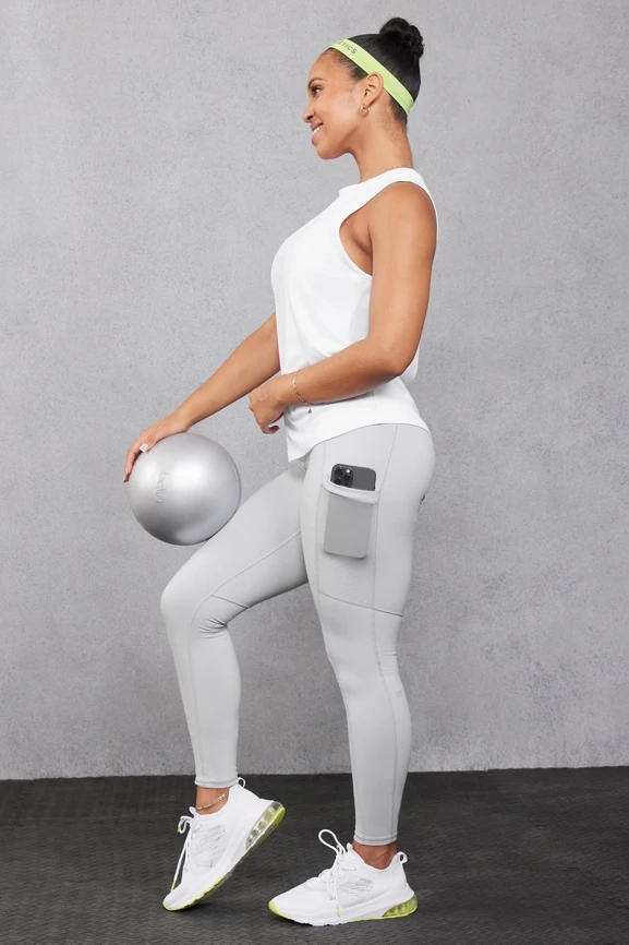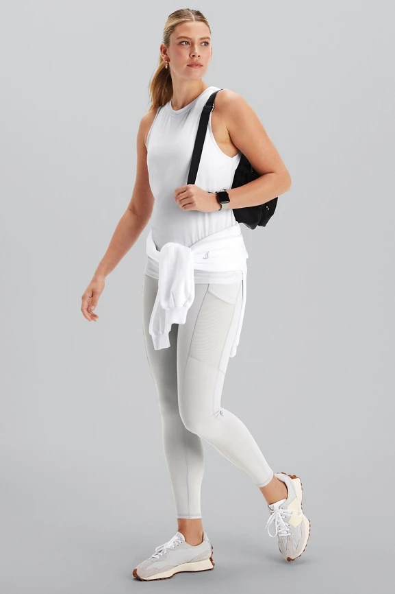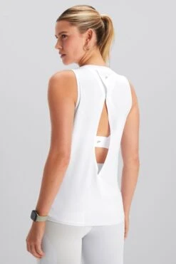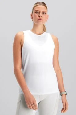 This super-soft tank with open back detail is made from recycled fabrics and will wick away moisture without feeling clingy in your next workout.