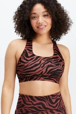 Standard sports bra from the front, major strap party from the back. Mix up your routine in our medium-support style with all the technical features your drills depend on.