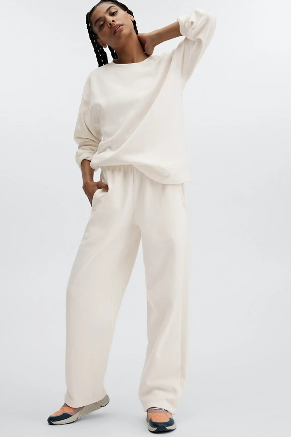 Both chic and comfy in our recycled structured fleece, this high-waisted, wide-leg style features encased elastic at waistband and hand pockets.