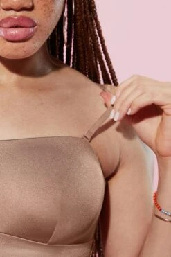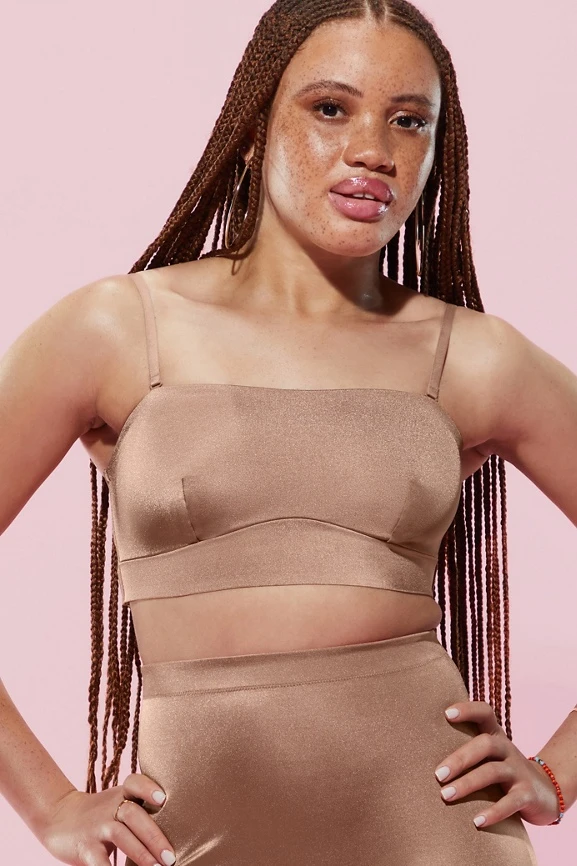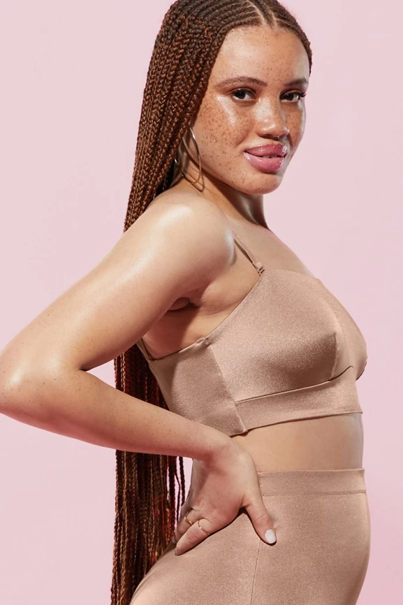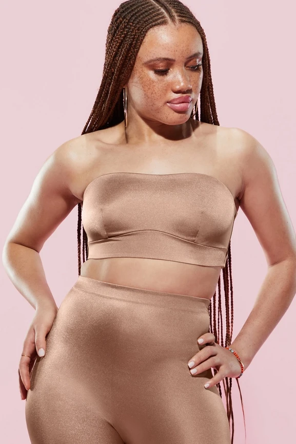 Our shaping bandeau defies gravity. Supportive, flexible side boning keeps everything in place, while the contrast interior mesh layer shapes and defines. Style it with the Open Bust Thong Bodysuit for the full look.
