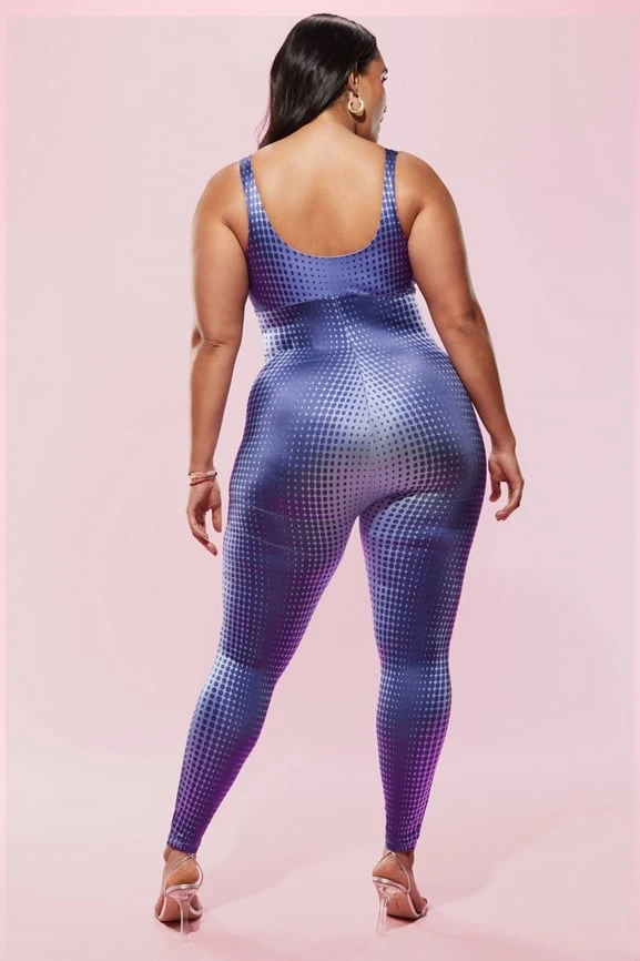 Our full-length shaping catsuit makes a statement in smooth, high-shine fabric. Breathable, interior contrast mesh delivers all-around compression, and a clean-finish neckline with comfortable straps make this a wearable piece for all day and night.