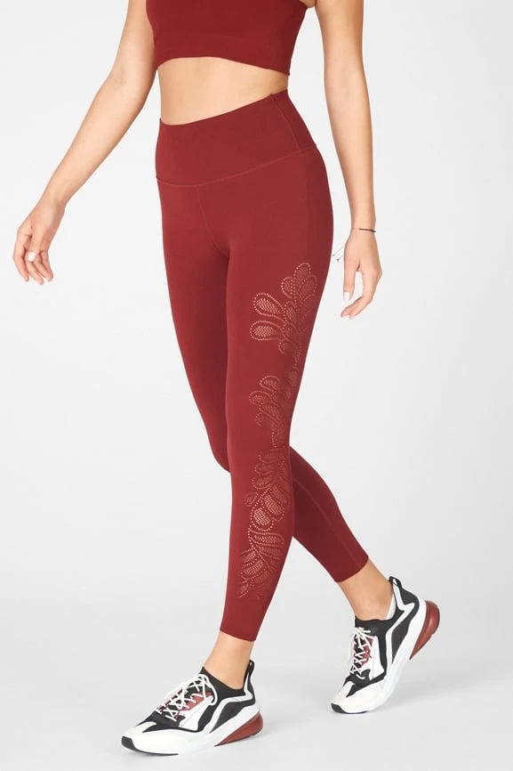Pretty and purposeful, our floral, lace-inspired detailing also provides added breathability to our 7/8 leggings in our most advanced fabric.