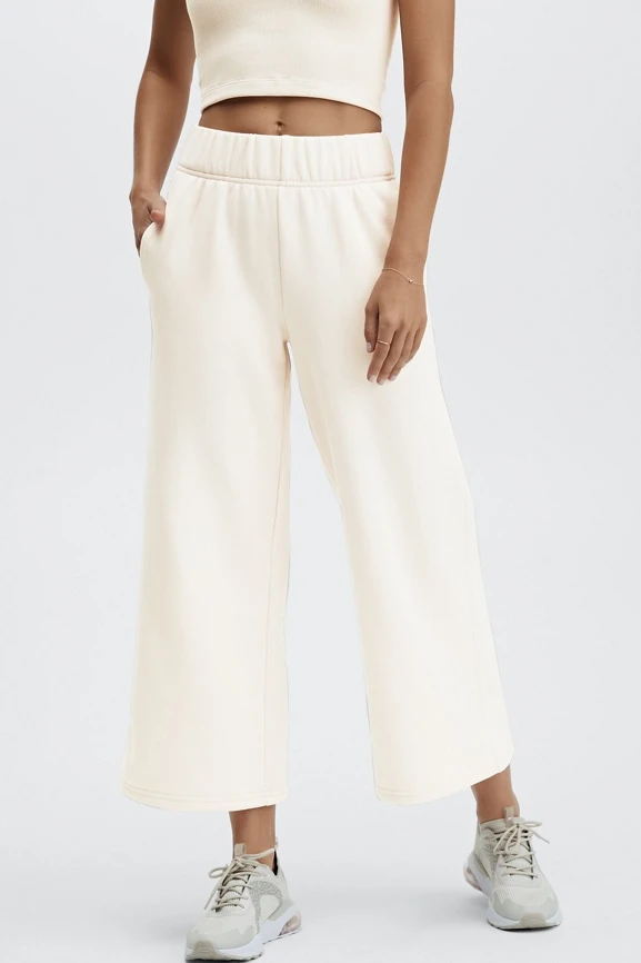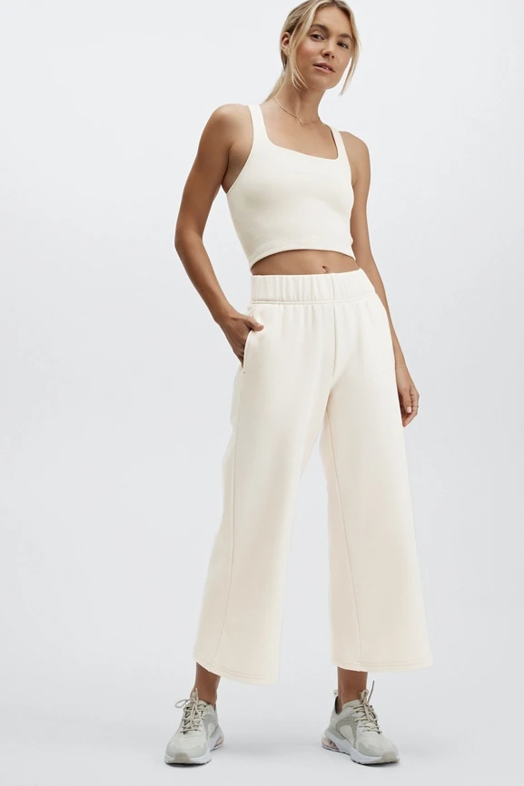 Made with recycled polyester, our cropped, wide-leg trousers was designed to be worn high-waisted and paired with trainers and heels alike.