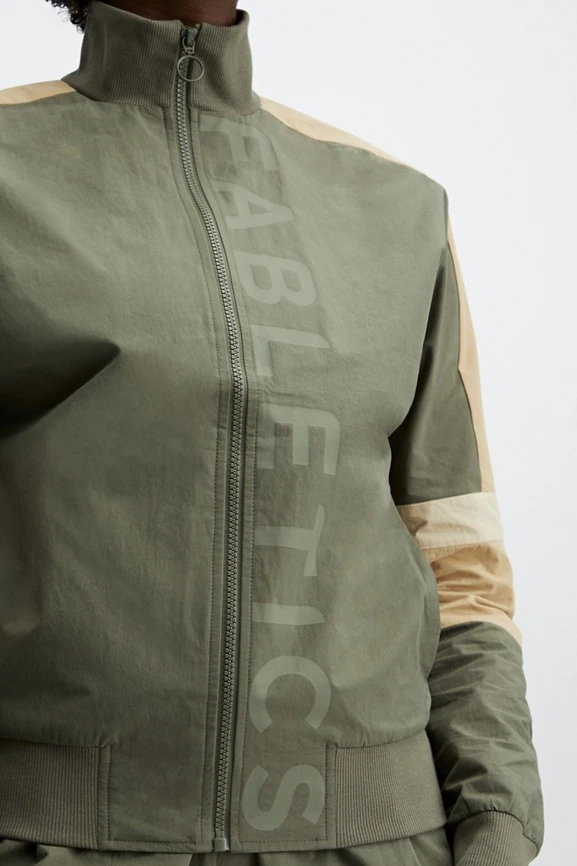 This retro design with contrast details, branded with our watermark, is the cool outerwear piece that will take your gym look to the next level.