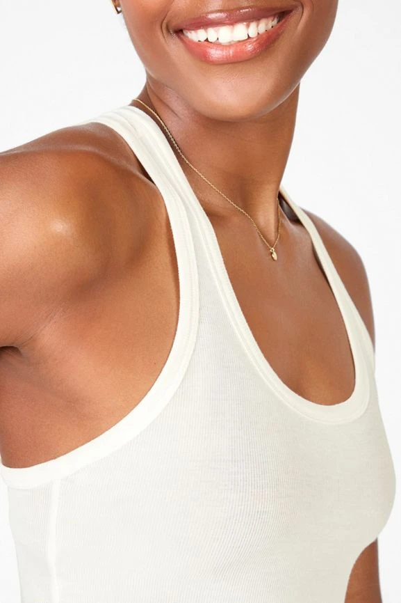 Our softest tank top ever has arrived! It comes in a racerback silhouette that allows for full range of movement with cute, ribbed details, too.
