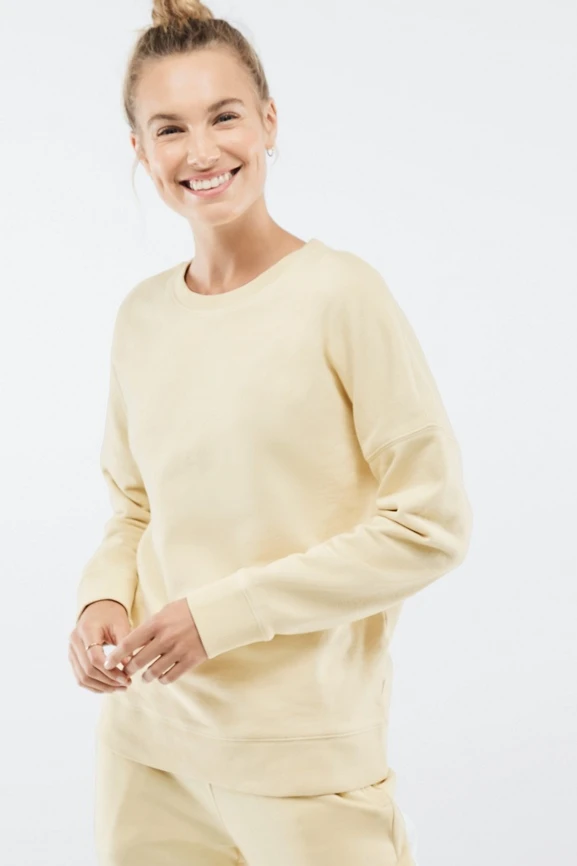 An upgrade to your post-gym pullover, our super-soft 100% cotton style with a subtle paisley print features a ribbed hem and wide cuffs.