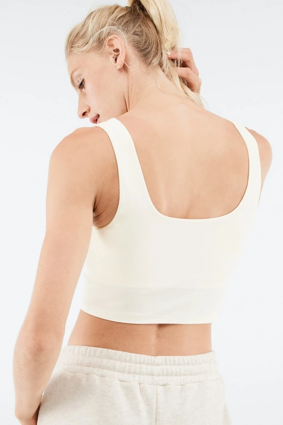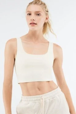 A cropped tank with built-in bra and square neckline, this knit style was designed with at-home leisure in mind.