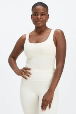 Our wide-strap tank cut from recycled fabric features a stylish twist detail at back and a comfortable (and convenient!) built-in bra.
