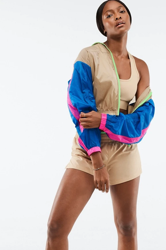 Lightweight and with colour-blocked panels, our woven jacket is packed with features – including front hand pockets, a zip closure, and elastic cuffs and hem.