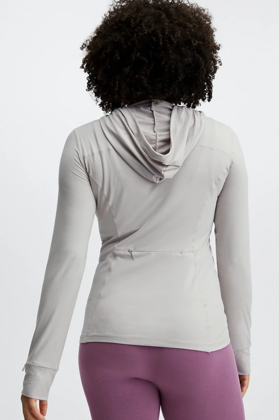 The only thing you need is our hoodie—made from our new, recycled performance fabric. Features stitching details designed to contour your silhouette, covered thumbholes, and specially designed pockets to hold your phone and wireless headphones! Â