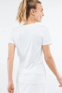 The newest addition to our collection of recycled, high-performance styles, this top features form-flattering seams and a back zip pocket—perfect for keeping personal items on the trail or track.