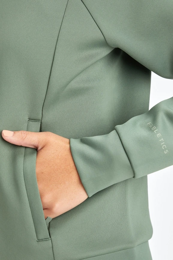 With a sporty mock neck, this jacket made from our Plush Interlock fabric has a soft, luxe feel and a tailored fit.