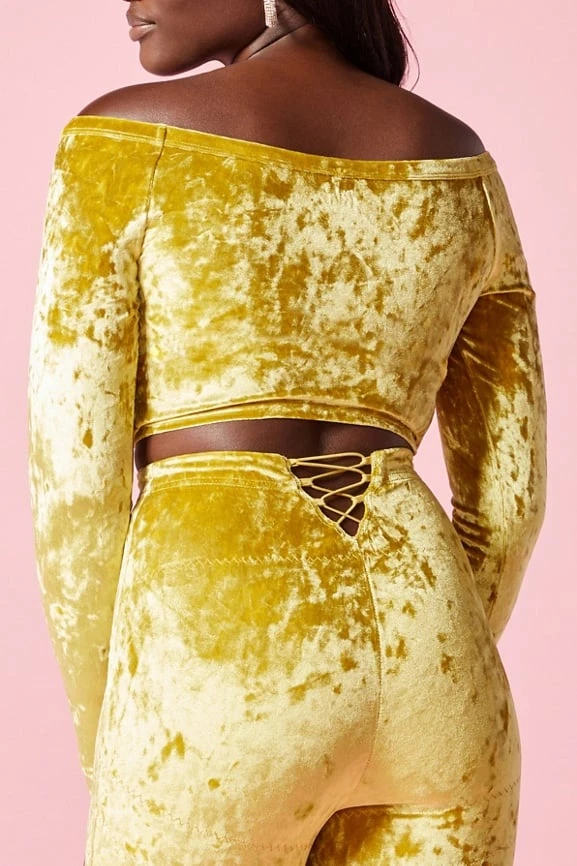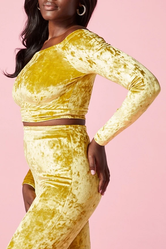 Featuring medium compression, this crushed velour top fits with a firm body-shaping hug. It’s lined with breathable mesh at the front and sleeve for support across the chest and smoothing down the arm. (Yup! Shaping sleeves) Style with Plusshy Leggings.