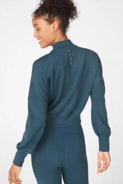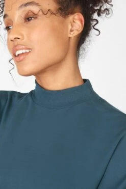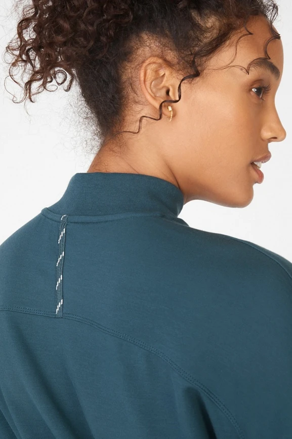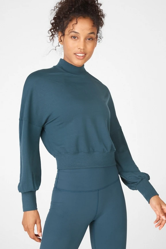 Our cropped mock-neck with puff sleeves and dropped shoulders is the lounge-worthy, stay-at-home pullover you’ve been waiting for all winter.