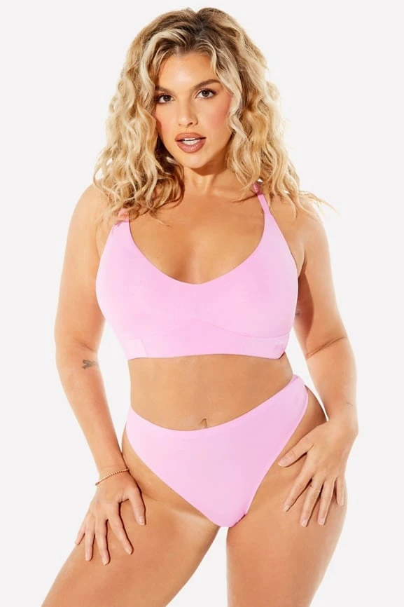 Made from oh-so-soft lightweight fabric that smooths and cools, our Plunge Bra features adjustable straps and a side sling that keeps the tiddies in place. Our High Waist Brief and Thong have bonding at the leg and waistband for a sexy, no-show look.