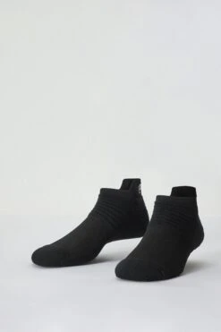 Start at the base with an ergonomically-sound ankle sock. It provides extra comfort with ball and heel padding, breathability with mesh fabric, and a perfect fit with arch support.