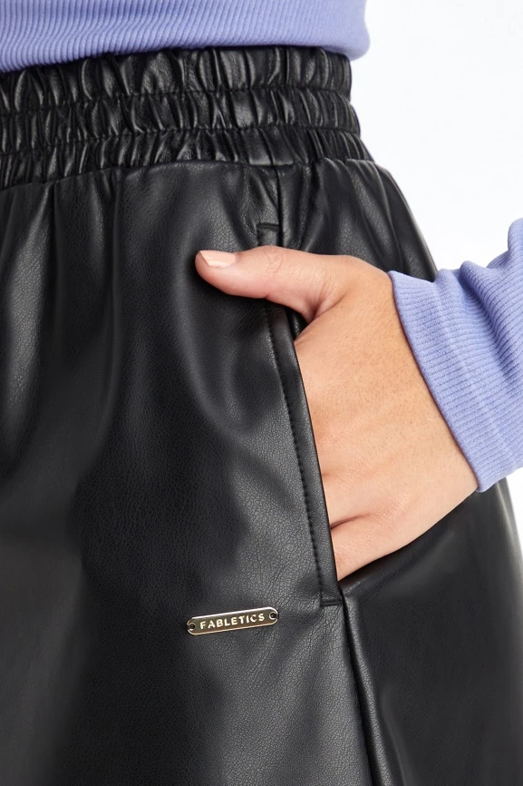 This high-waisted short made from vegan leather has a ruched elastic waistband and side-seam pockets.