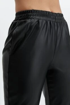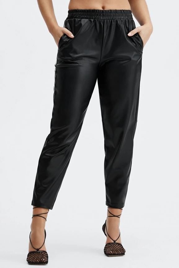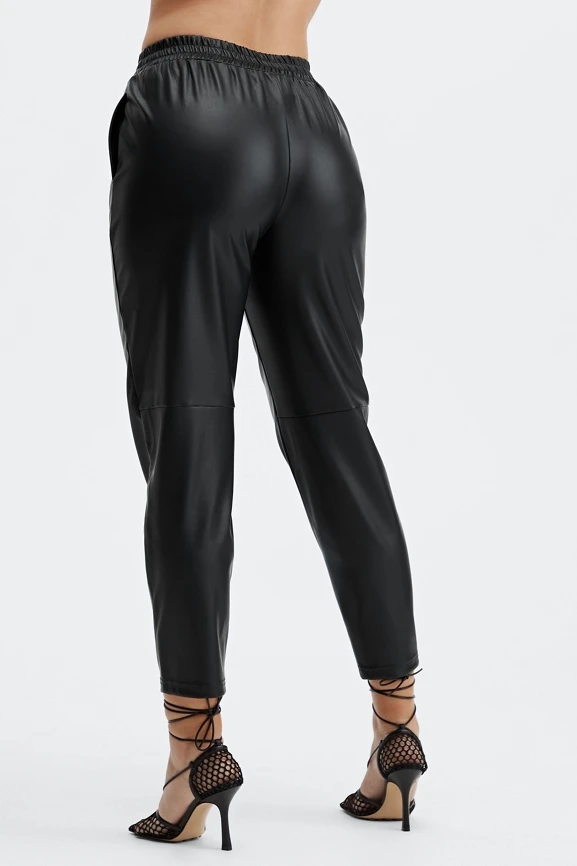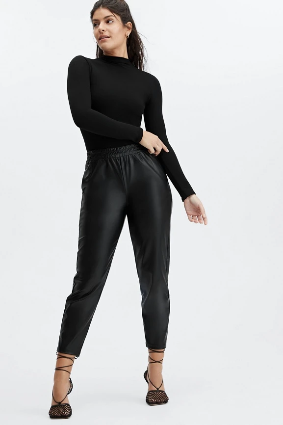 Think like a stylist and play with proportions in our relaxed vegan leather joggers featuring a shirred waistband with encased elastic and on-seam pockets.